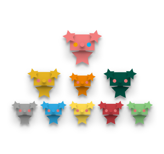 Figmaの授業の時にオブジェクトの関係性について習っていて、 オブジェクトを組み合わせていたら思いついたので作成してみました。 オッドアイの子が始まりでそこから仲間がどんどん増えていきました。