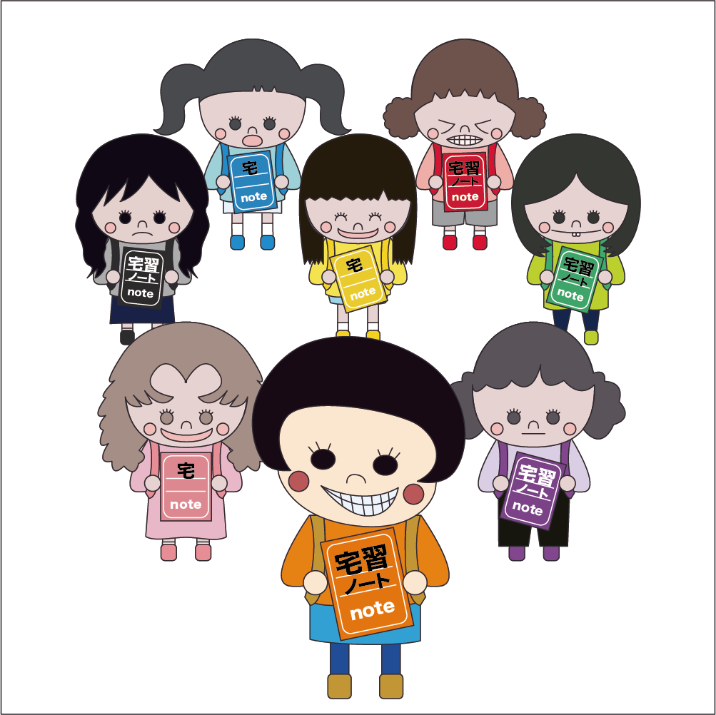 公募の地元ポスターを作った時に生み出した「宅習という名のミッションを課せられた」宮崎キッズです。 真ん中センターの子は妹の子供の頃の写真を参考にして生み出して、服装やランドセルを当時を思い出して作成しました。